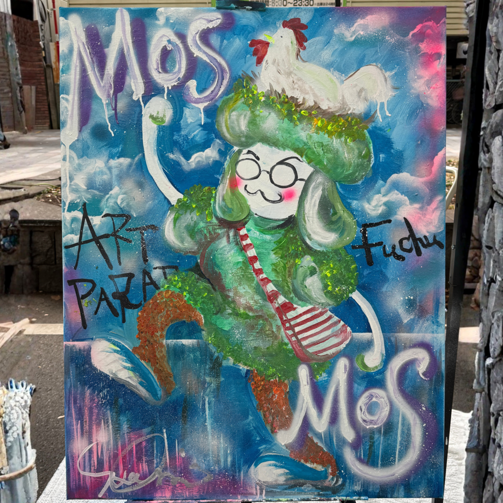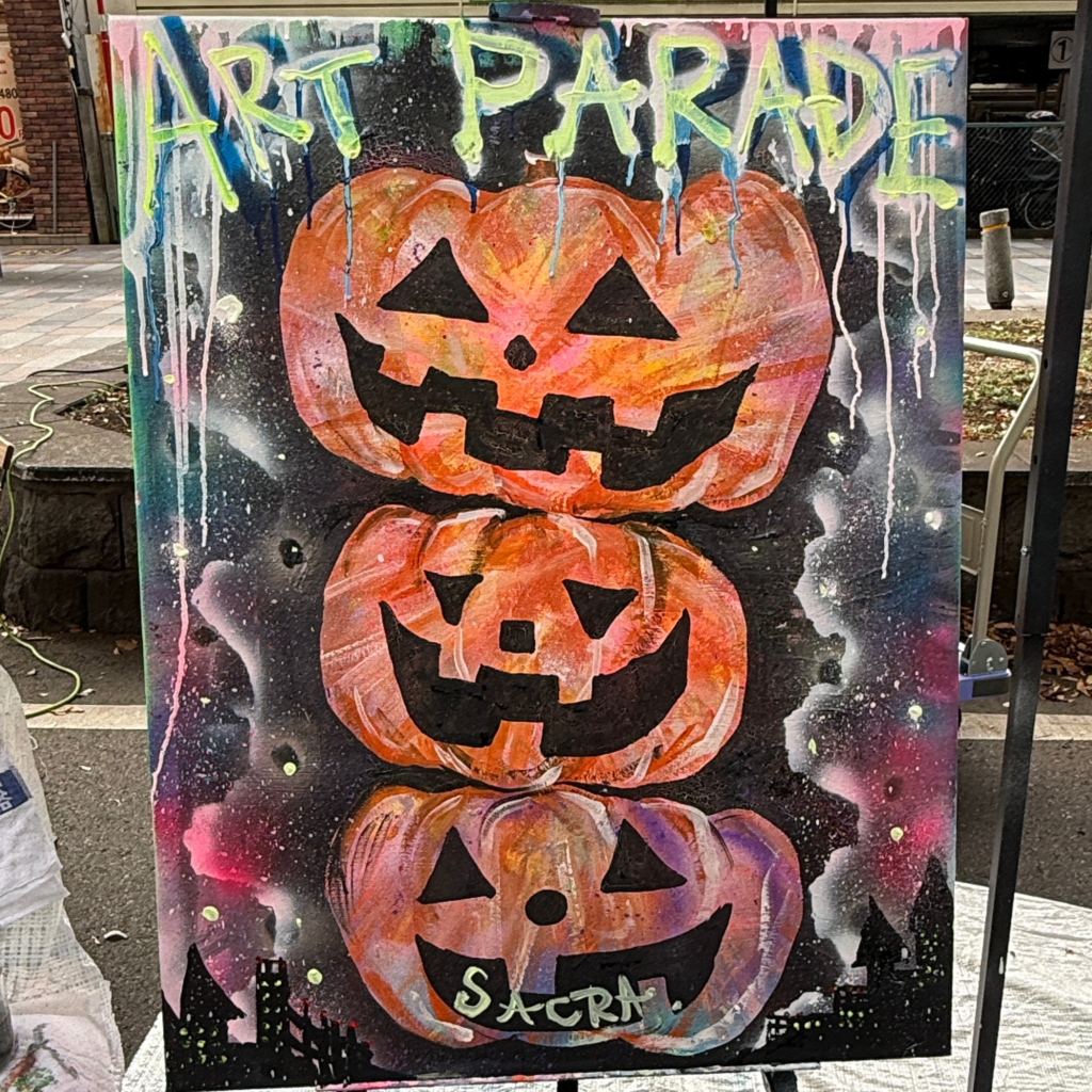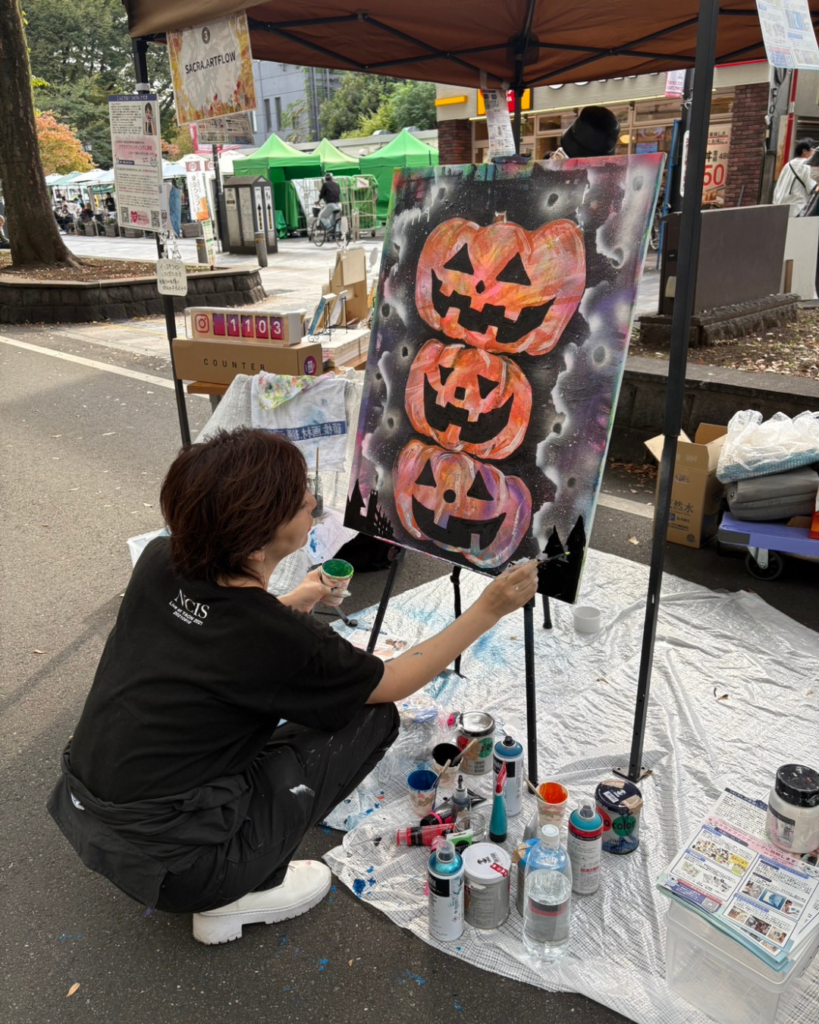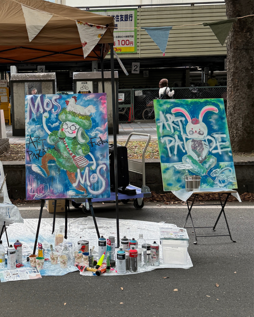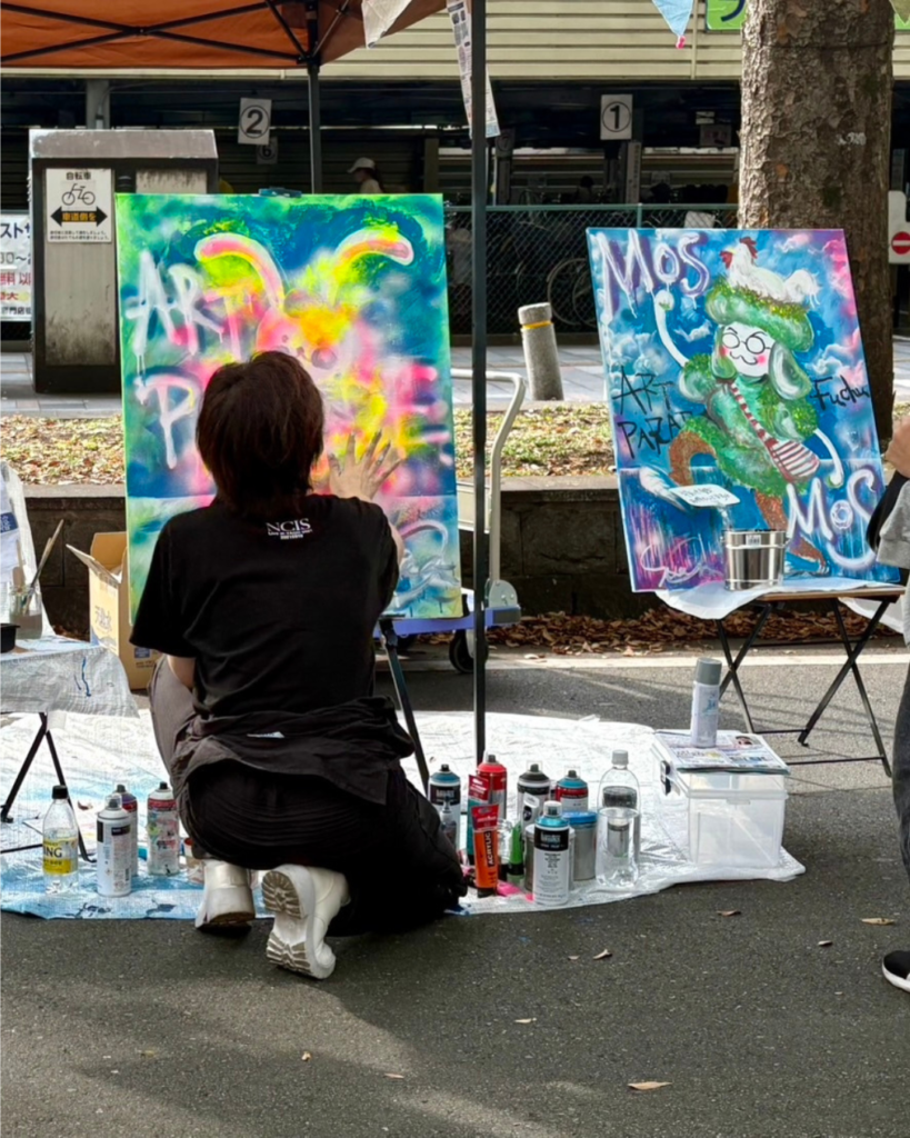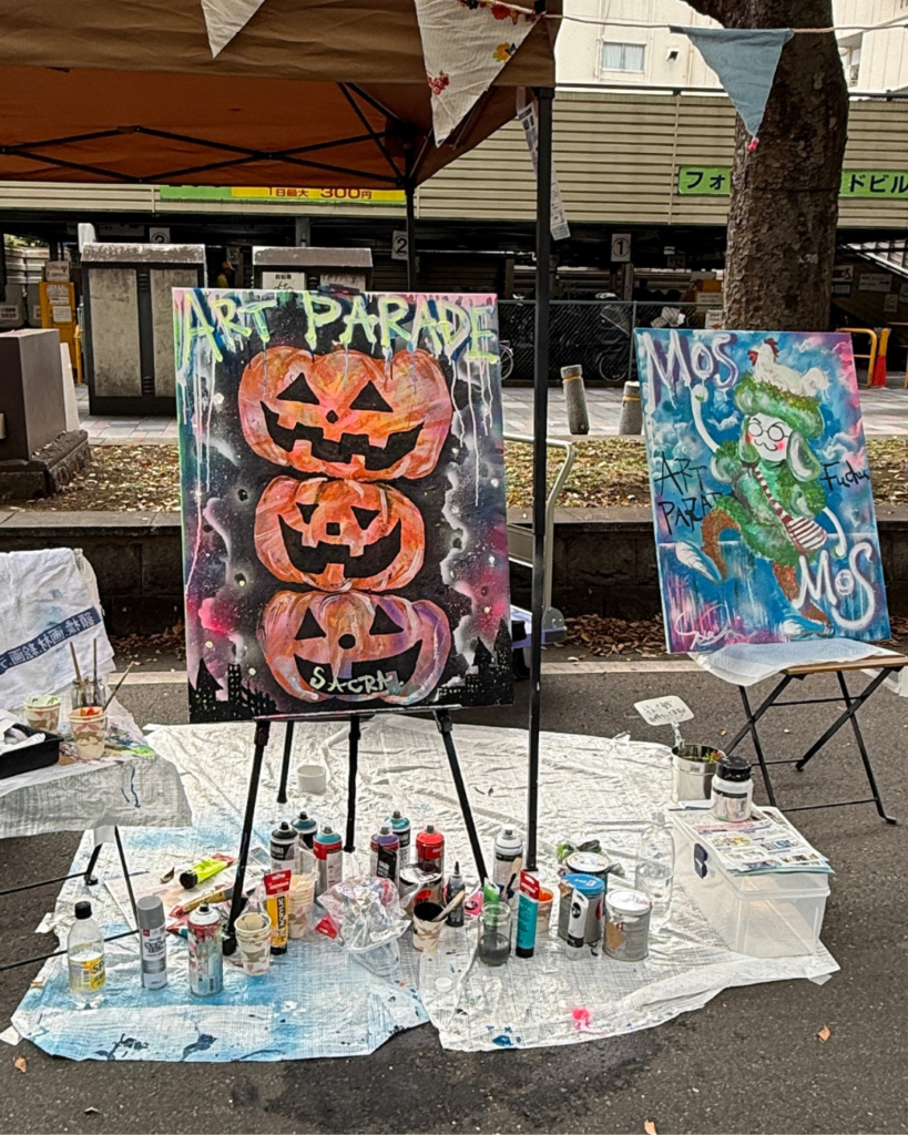 2025年10月12日、府中アートパレードにてライブペインティングを行いました。この日は、歩行者天国で行われる、アートと音楽にあふれた大きな一日限りのお祭りでした。